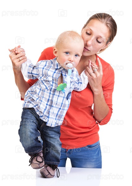 Малыш учится ходить с помощью матери