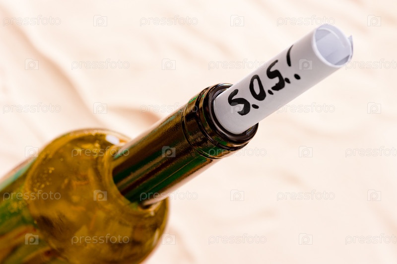 Бутылка с просьбой о спасении в песке