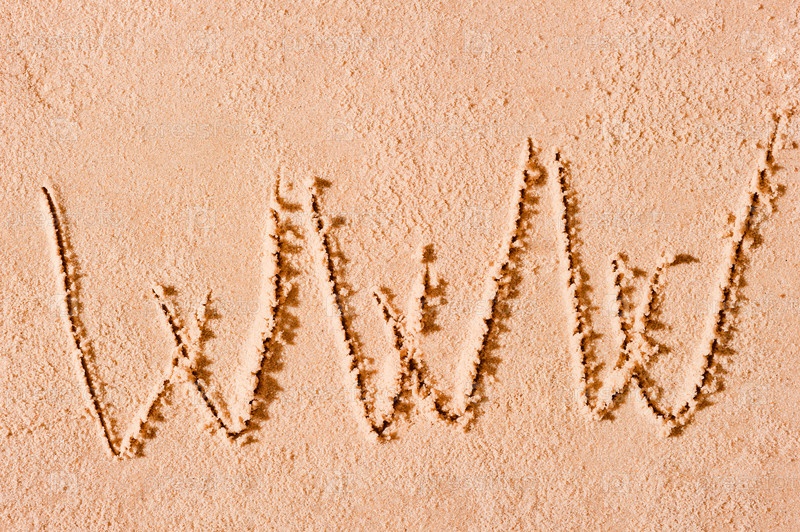 Буквы WWW, написанные на мокром песке
