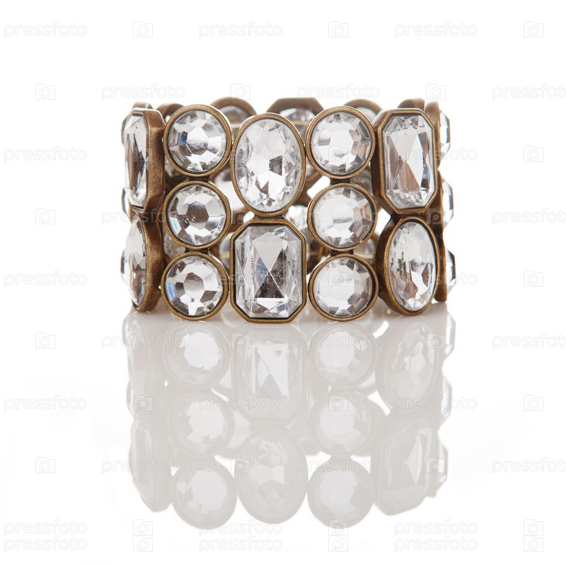 Бриллиантовый браслет, изолированный на белом фоне с отражением