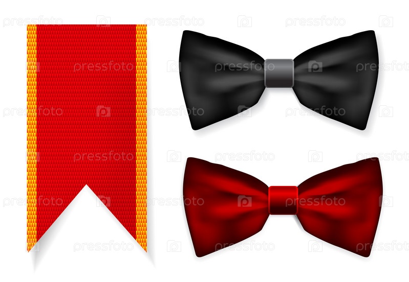 Два галстука-бабочки и красная лента на белом фоне
