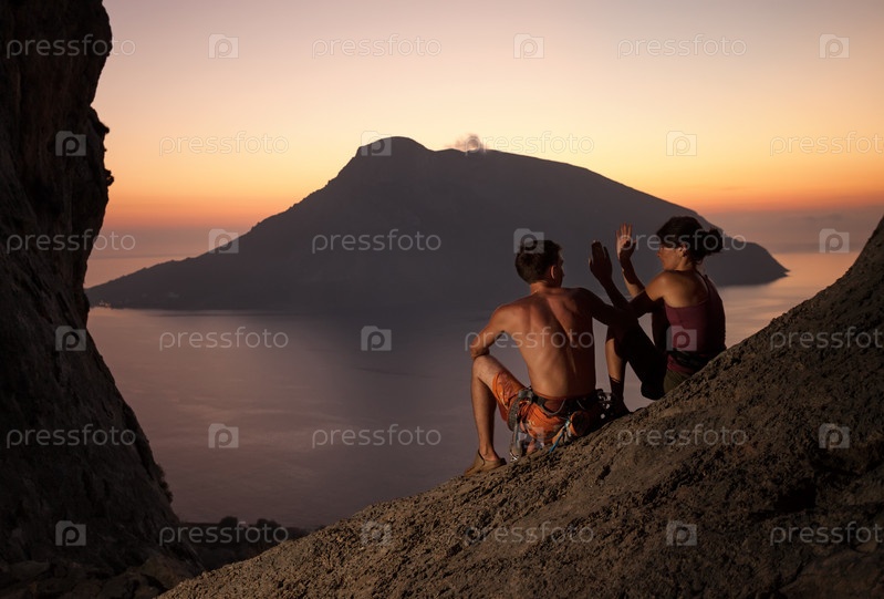 Скалолазы отдыхают на закате
