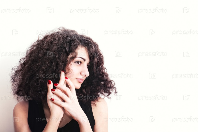 Портрет молодой кудрявой брюнетки