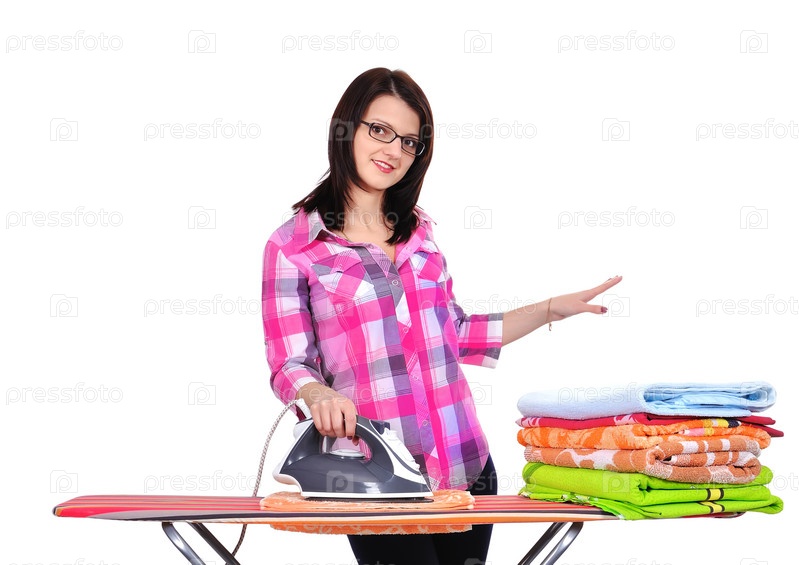 Женщина гладит белье