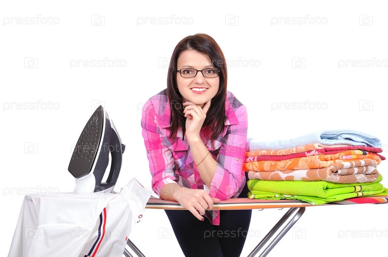 Женщина гладит белье