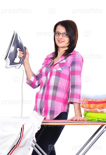 Женщина гладит белье