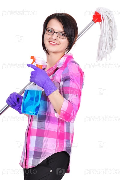 Девушка делает уборку