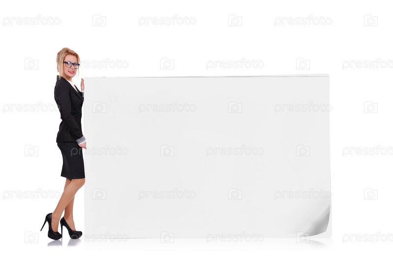 Женщина и большой плакат