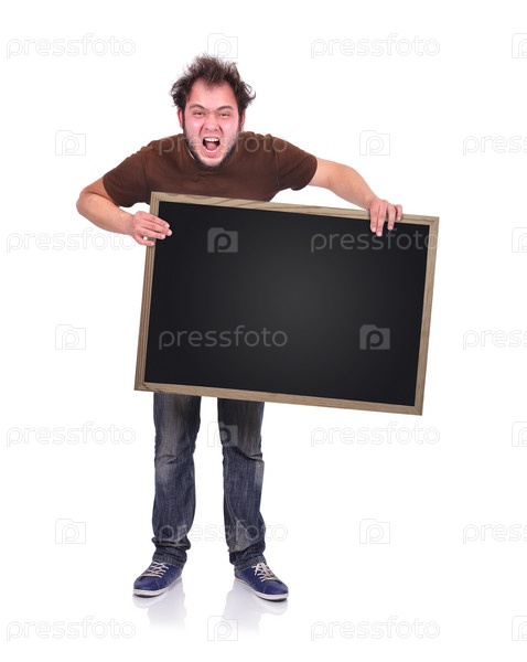Злой мужчина с баннером