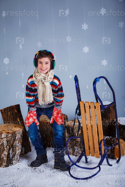 Смешной мальчик в зимней одежде