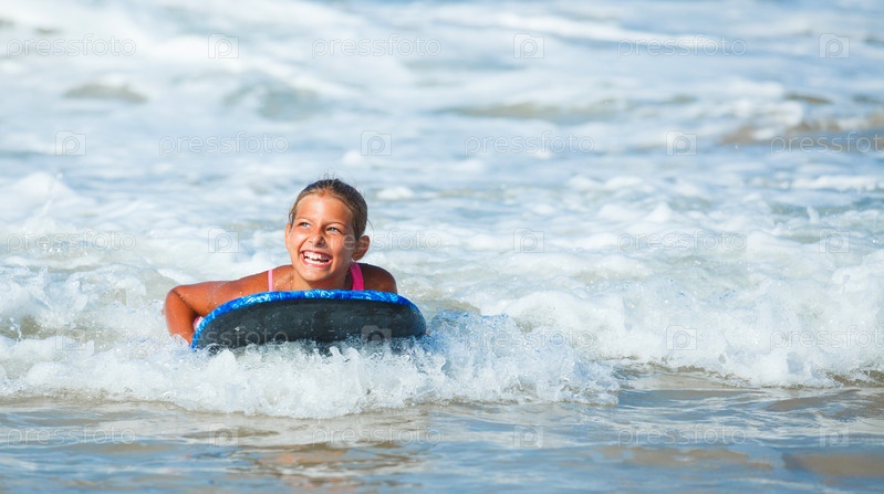 Девочка катается на серфе