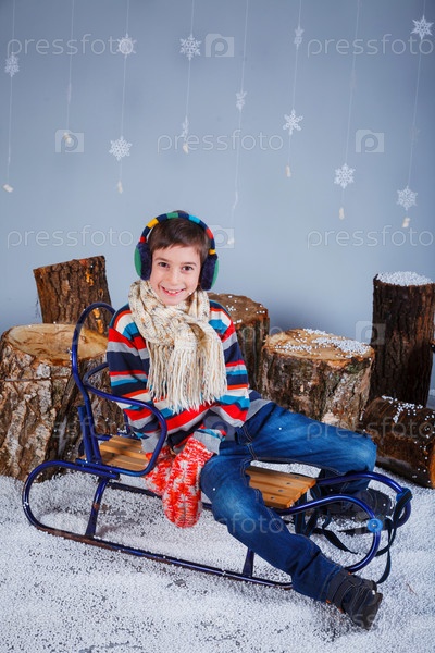 Смешной мальчик в зимней одежде