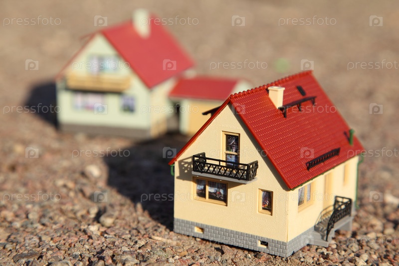 Модели двух небольших домов на коричневом фоне