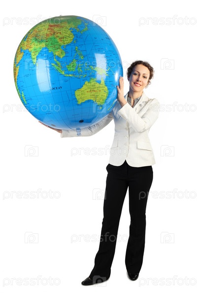 Молодая женщина с мячом в виде глобуса