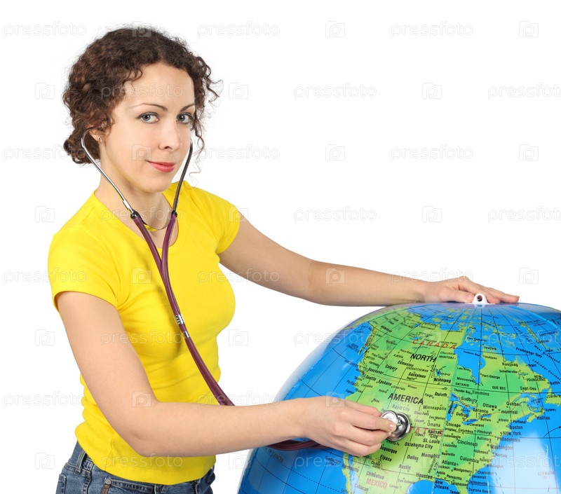 Молодая женщина с мячом в виде глобуса
