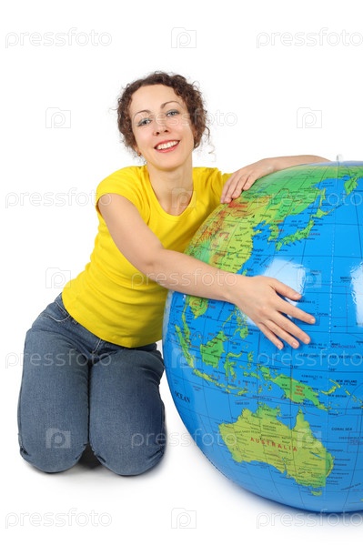 Молодая женщина с мячом в виде глобуса