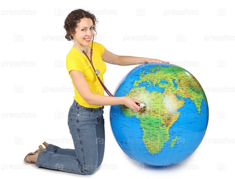Молодая женщина с мячом в виде глобуса