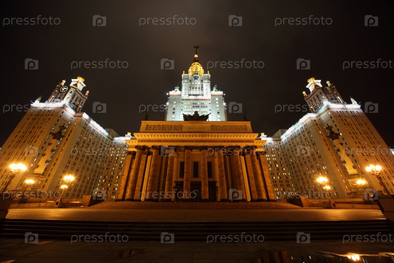 Главное здание Московского государственного университета. Осень. Вечер