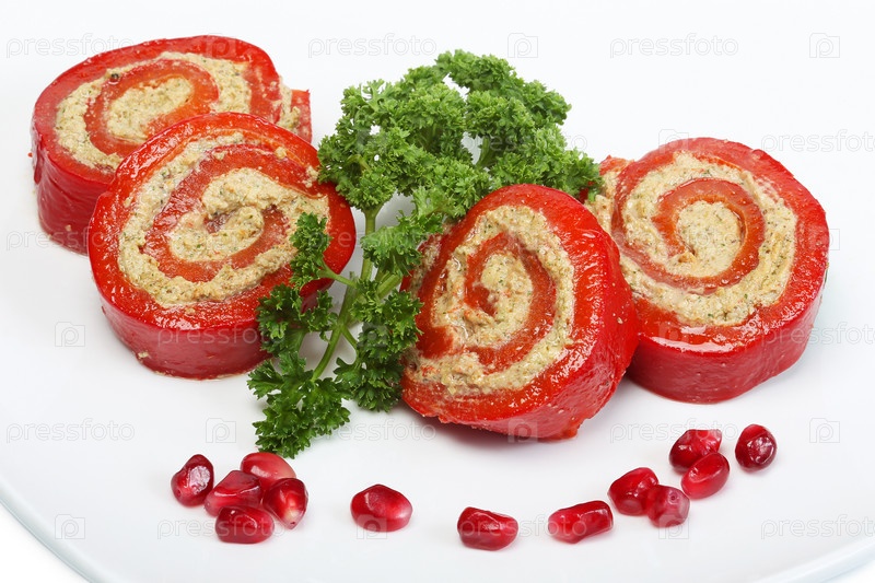 Перец, фаршированный ореховой пастой, с петрушкой
