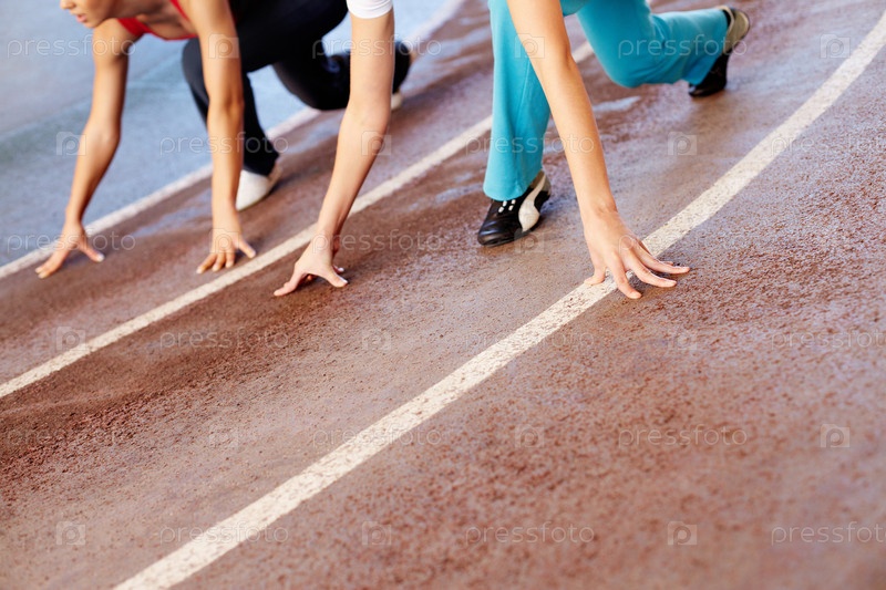 Девушки на старте перед бегом