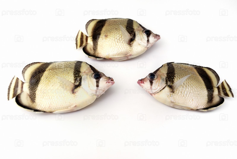 Три тропических рыбы на белом фоне