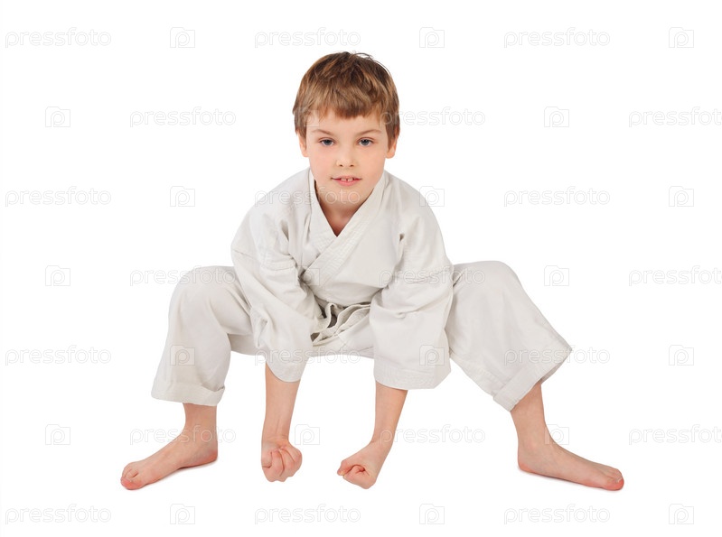Маленький каратист на белом фоне