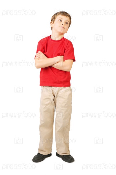Мальчик в красной футболке на белом фоне