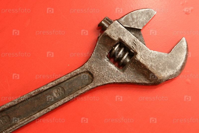 Гаечный ключ на красном фоне