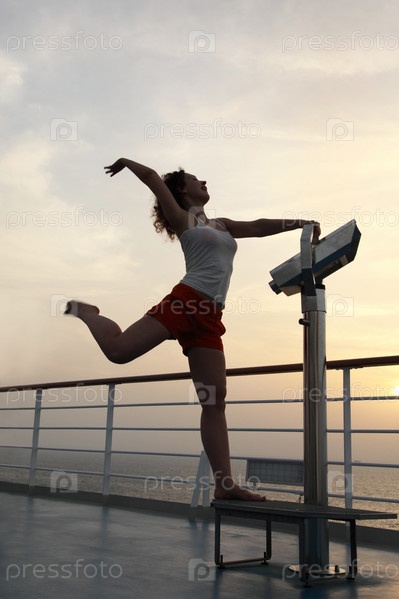 Девушка занимается гимнастикой на палубе судна