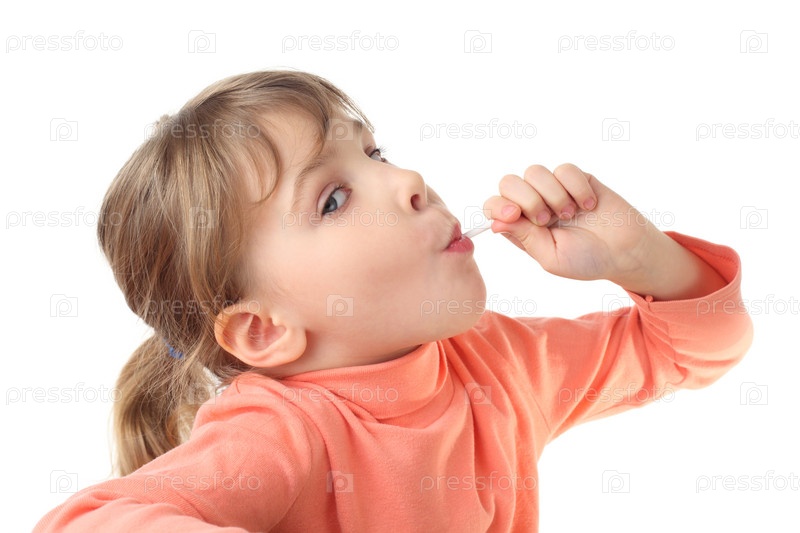 Портрет маленькой девочки с леденцом на белом фоне