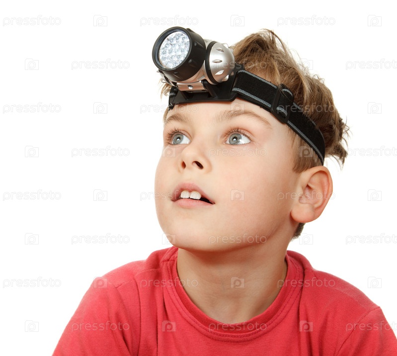 Мальчик с фонариком на голове