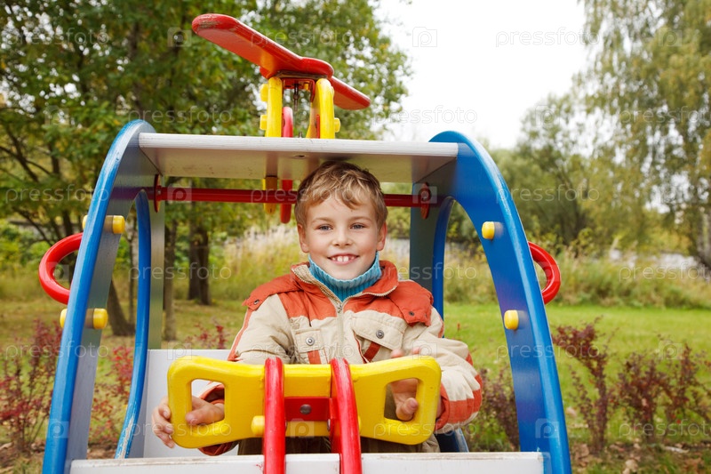 Мальчик играет на детской площадке
