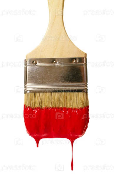 Красочная щетка с каплей цвета. изолирована на белом