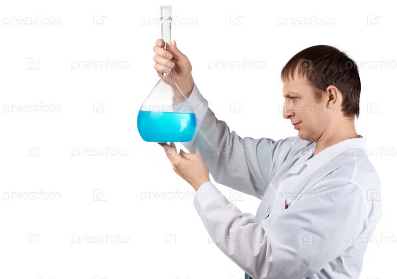 Портрет исследователя, проводящего научный эскперимент, на белом фоне