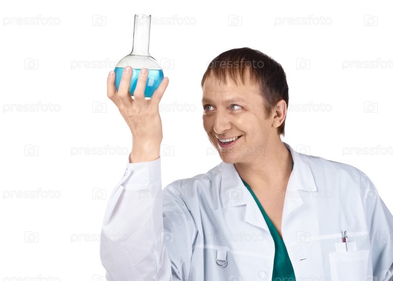 Портрет исследователя, проведящего научный эксперимент, на белом фоне