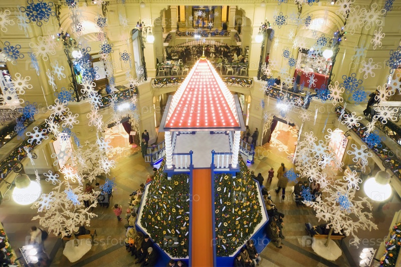Современный торговый центр в рождественские каникулы. ГУМ. Москва