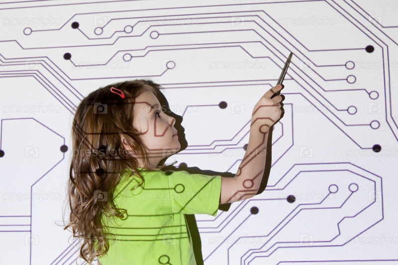 Девочка с указкой у проектора