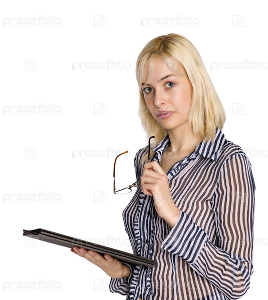 Красивая деловая женщина с очками и папкой