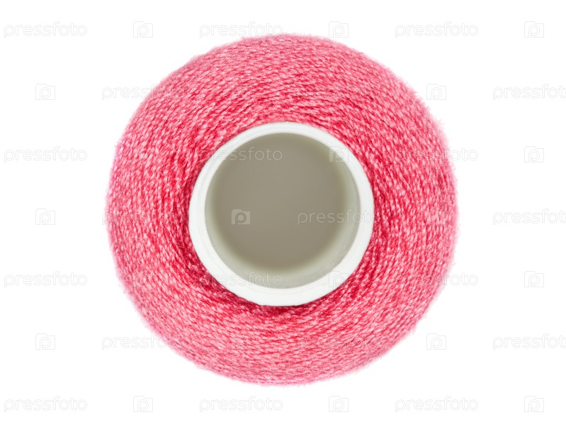 Катушка с красными нитками, изолированная на белом фоне
