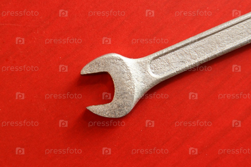 Гаечный ключ на красном фоне