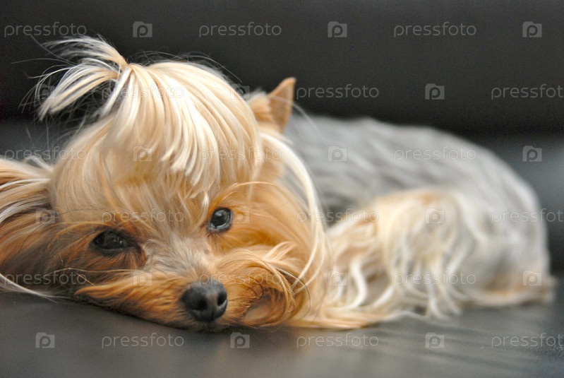 Йоркширский терьер, лежащий на полу