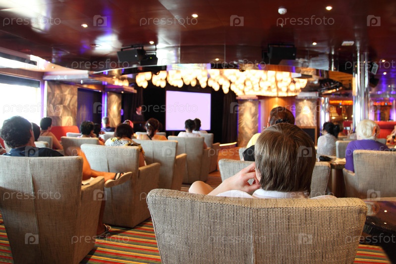 Люди смотрят кино на круизном лайнере