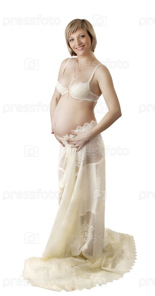 Портрет беременной женщины на белом фоне