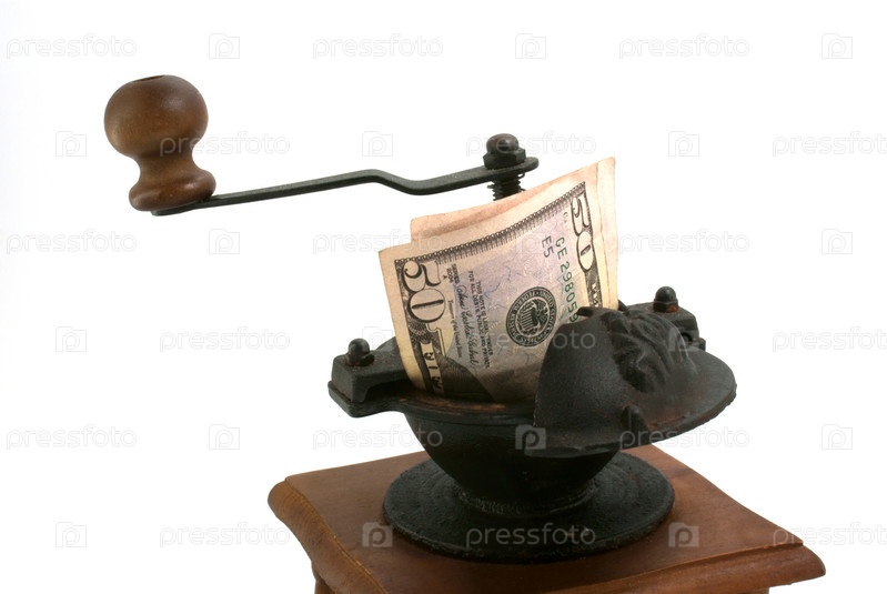 Ручная мельница измельчает деньги и получает монеты