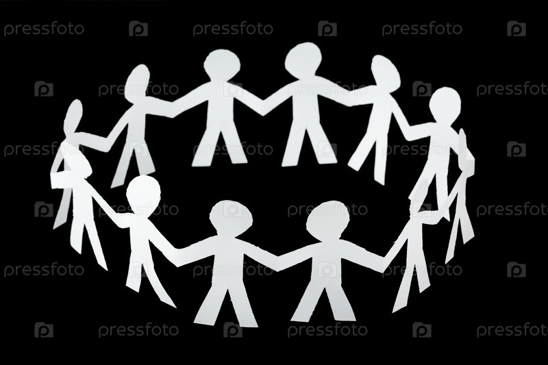 Бумажные человечки водят хоровод на черном фоне