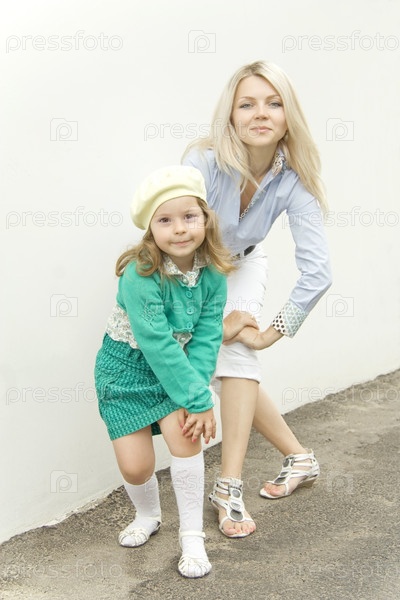 Женщина с ребенком стоят рядом и позируют