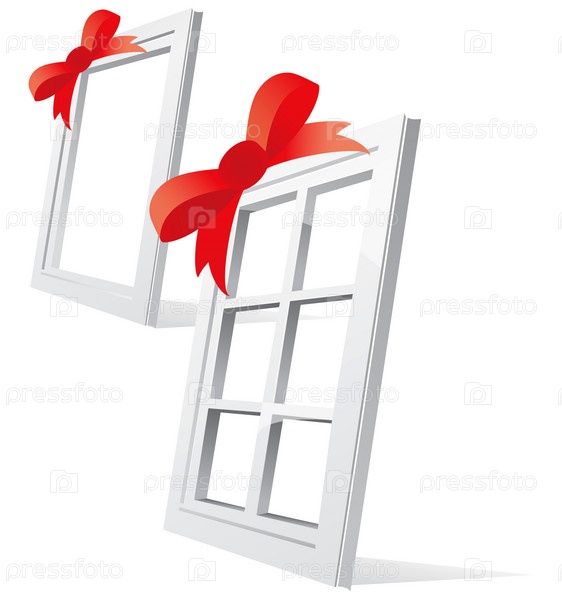 Пластиковые окна с бантами, на белом фоне