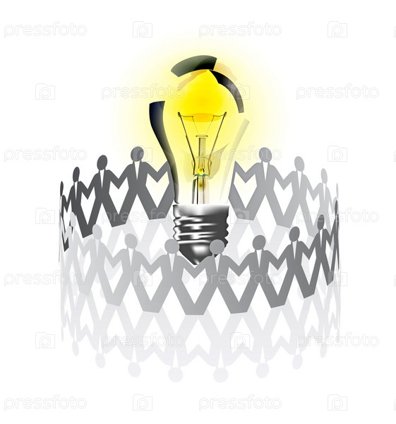Электрическая лампа и команда бумажных человечков