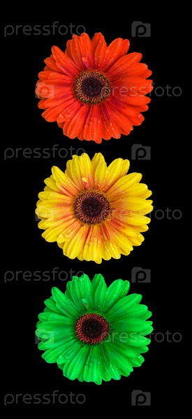 Разноцветные герберы на черном фоне