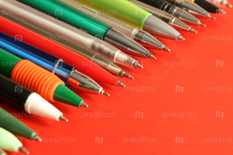 Набор ручек на красном столе